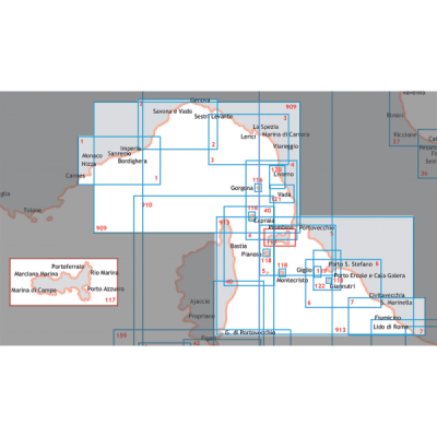 0100909 DA NIZZA A PIOMBINOCOSTE DI FRANCIA E ITALIA MAR LIGURE E TIRRENO CENTRO-SETTENTRIONALE 250.000 116 X 83 CM 40,90 € 3 pz.